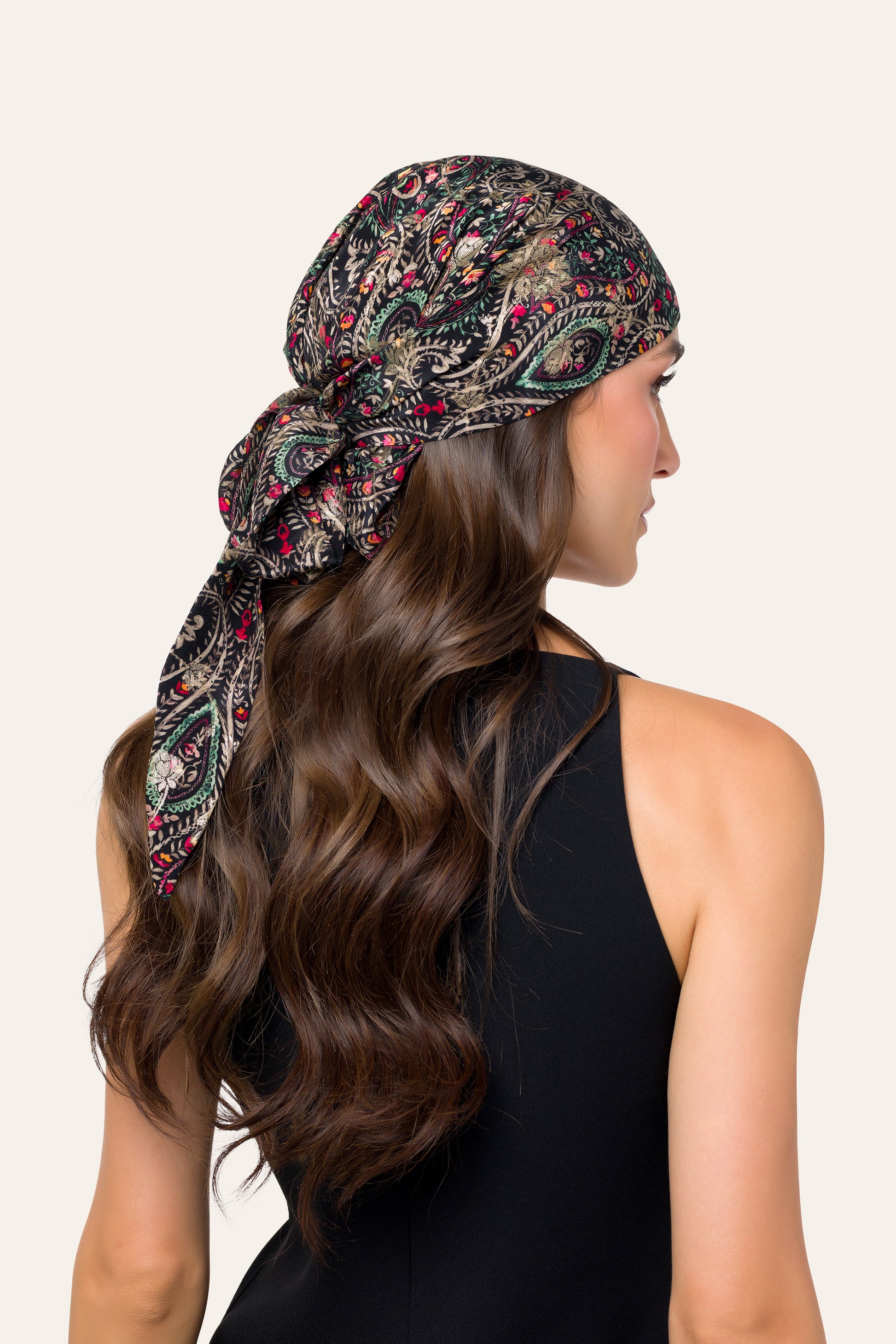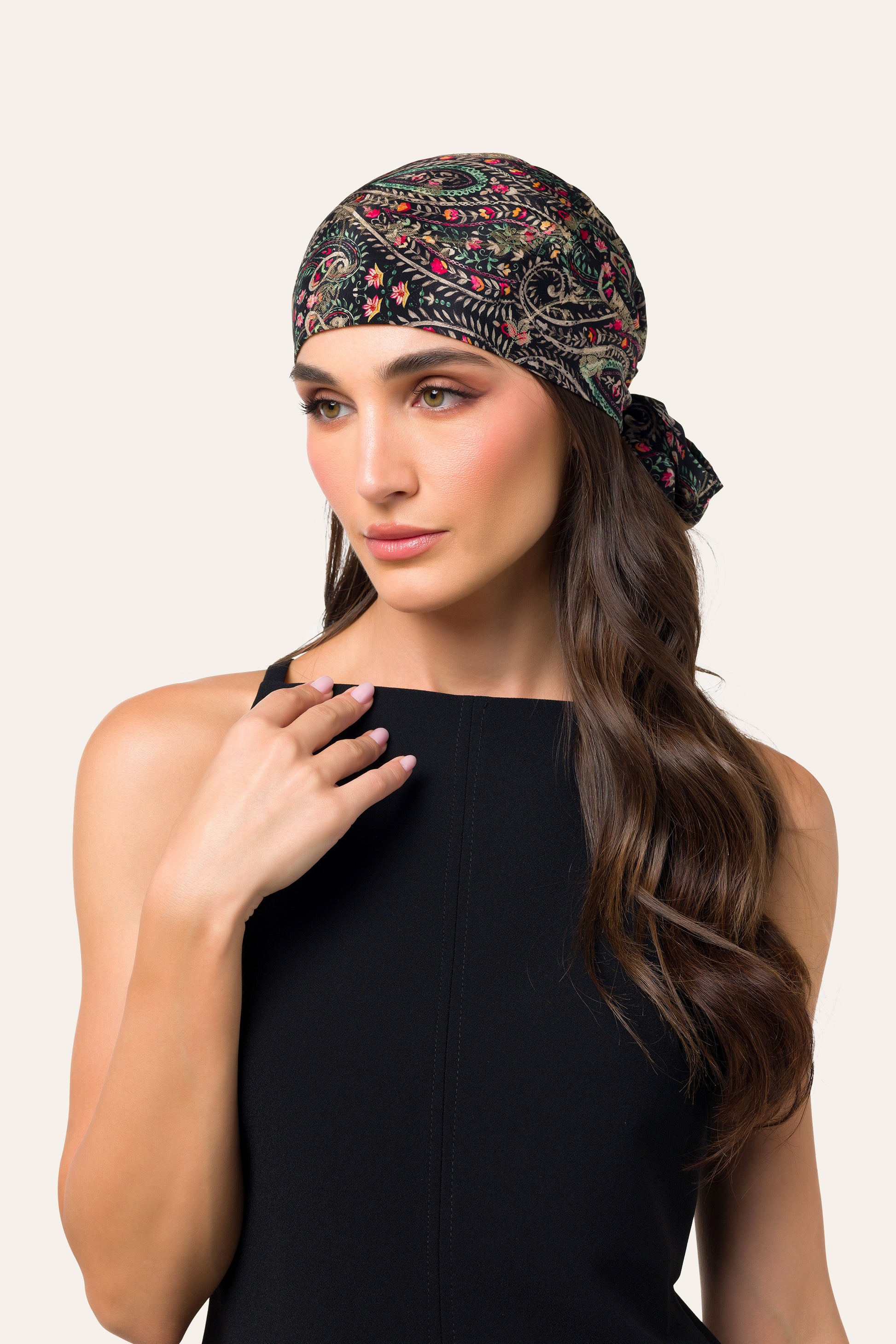 The floral flourish your wardrobe is missing. Blending ornate florals and paisley, the GIORGINA bandana is full of romantic details sure to charm anyone. It's enhanced for a non-slip fit from silk chiffon, making it an extra special piece.