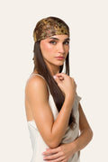 Storied prints like JADE always make for a memorable outfit. Handmade in Italy from chiffon, this bandana is adorned with sprays of florals and paisley with luxurious, brocade-like gold threads. The non-slip design ensures a smooth fit and perfectly knotted bow.