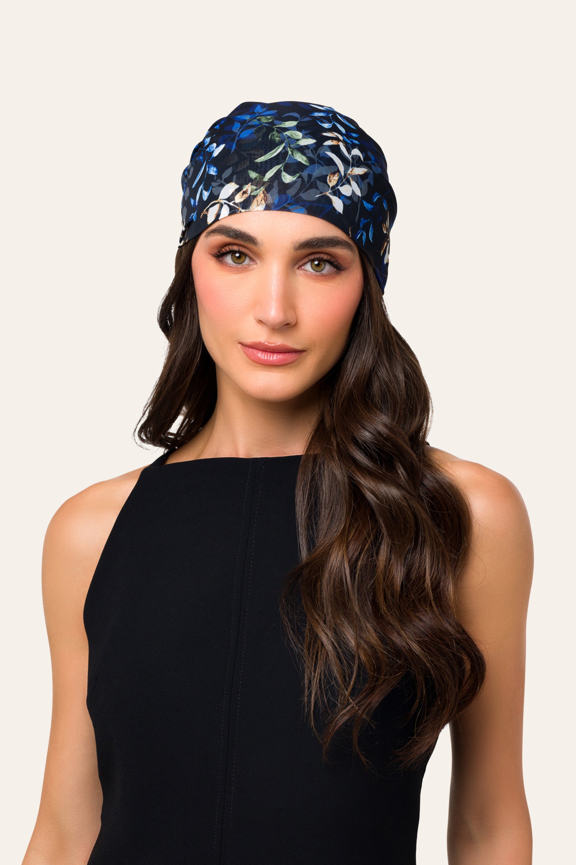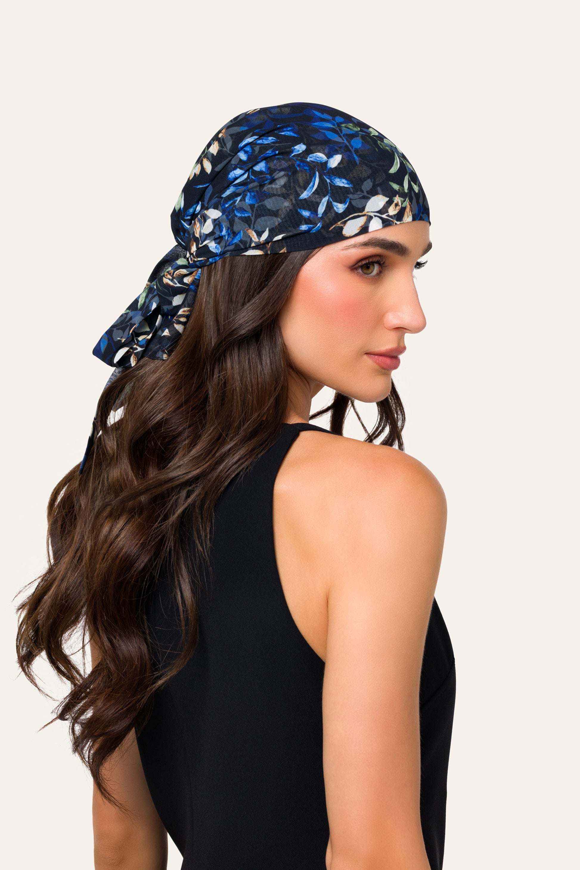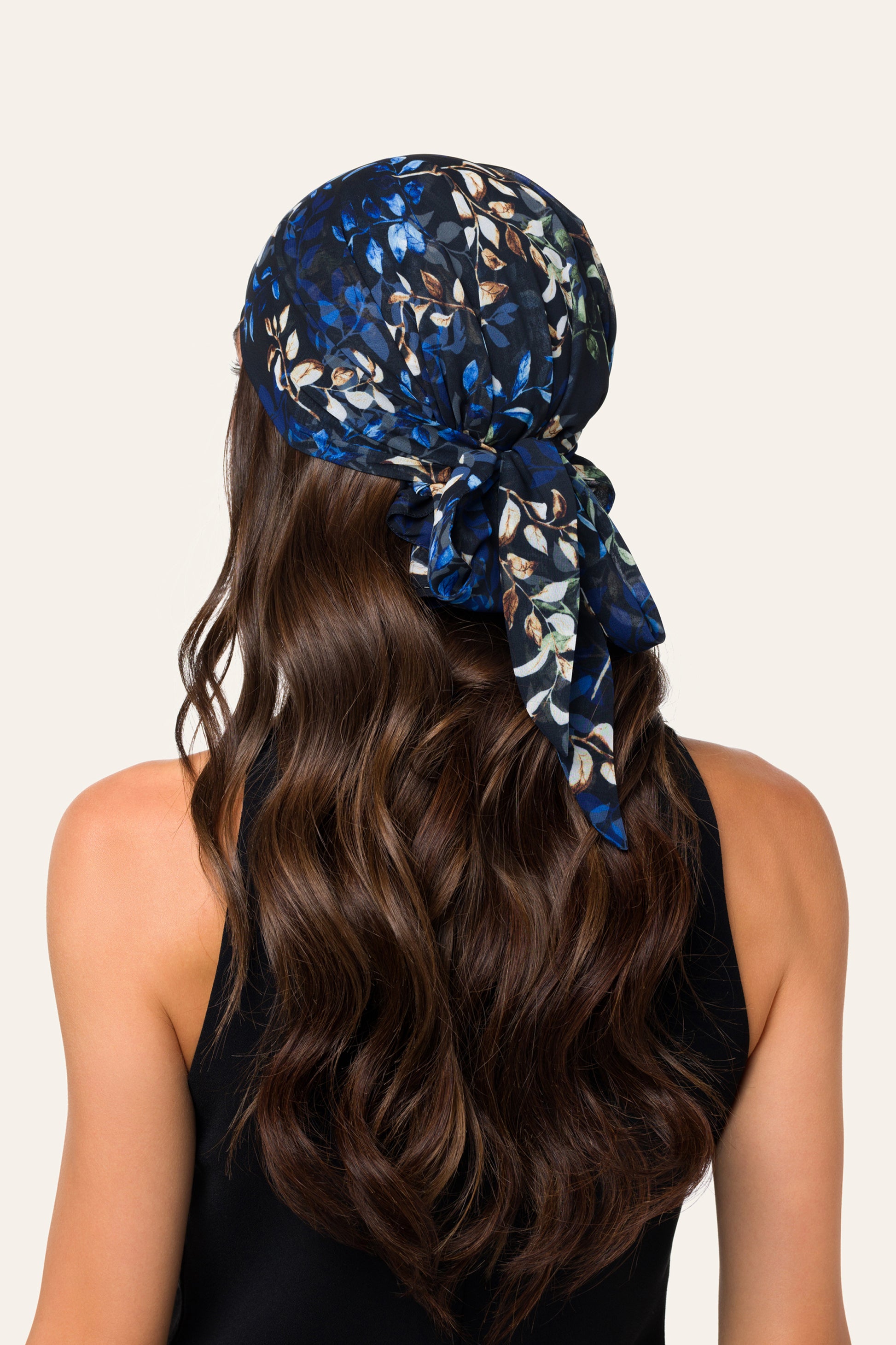 Who said florals are only for spring? Explore a new side to your style with a dark floral piece like LUNA. Enhanced with an anti-slip design from airy chiffon, it features dainty leaf patterns in a cool, moody palette. It's just the bandana to dress up your favorite going-out looks — and beyond.