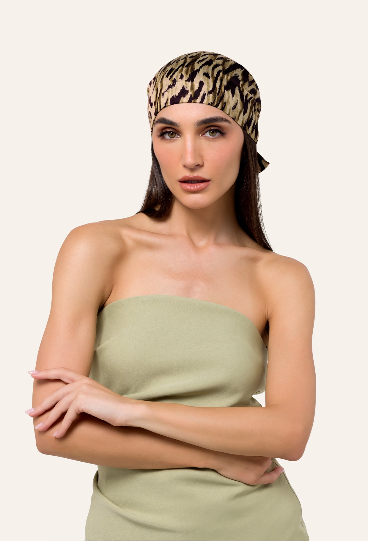 A chic and stunning option for daytime and evenings, LYSSA features Epitome's iconic cheetah print in silk. It is handrolled at the edges and cut for a smooth and flawless fit.