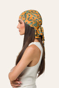Epitome scarves are a celebration of exquisite textiles around the world, and MIA is no exception. Handmade in Italy, this bandana is dyed in a rich, ochre color with a floral-paisley pattern you'll wear time and time again. The ties ensure a non-slip fit and easily fasten at the back.