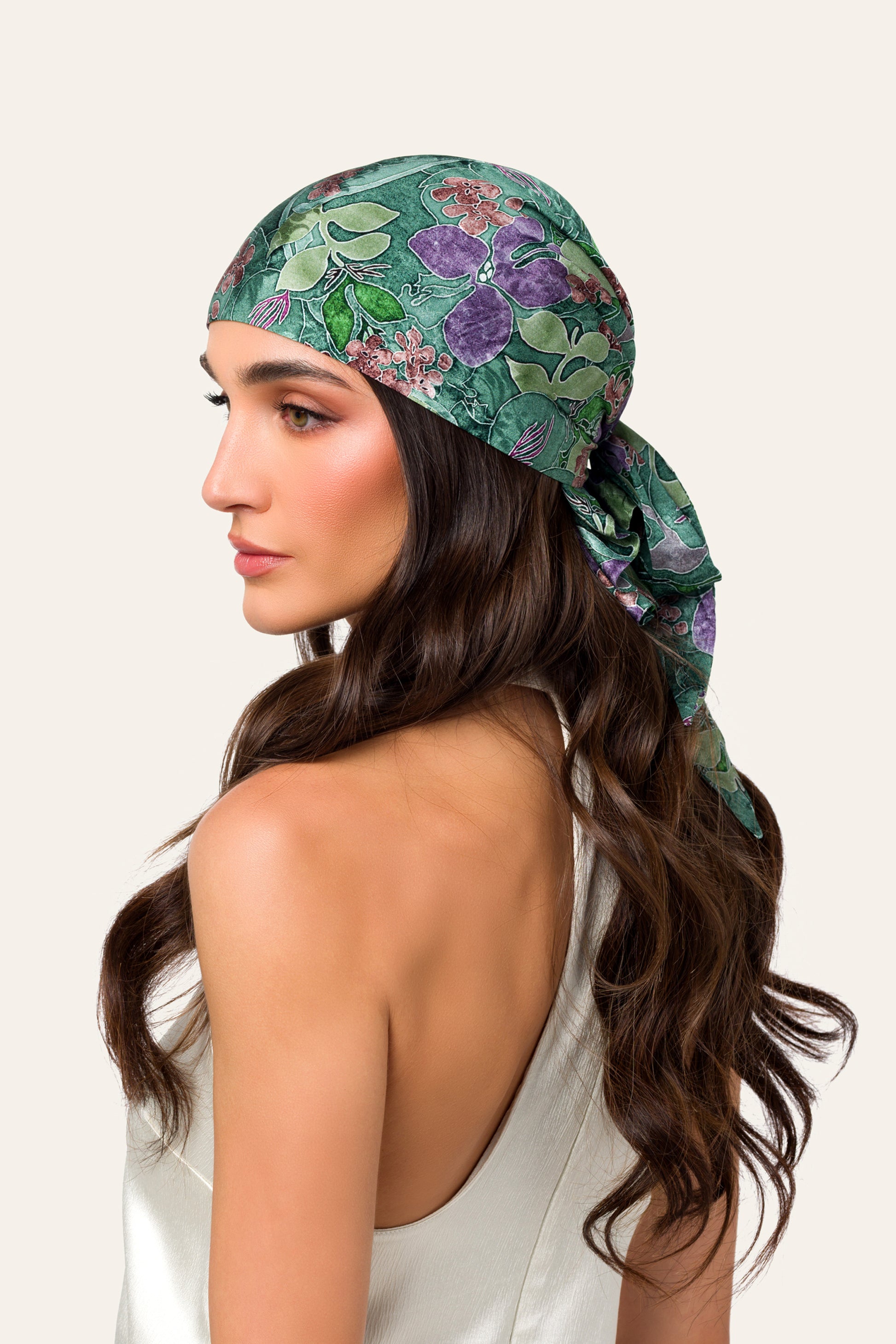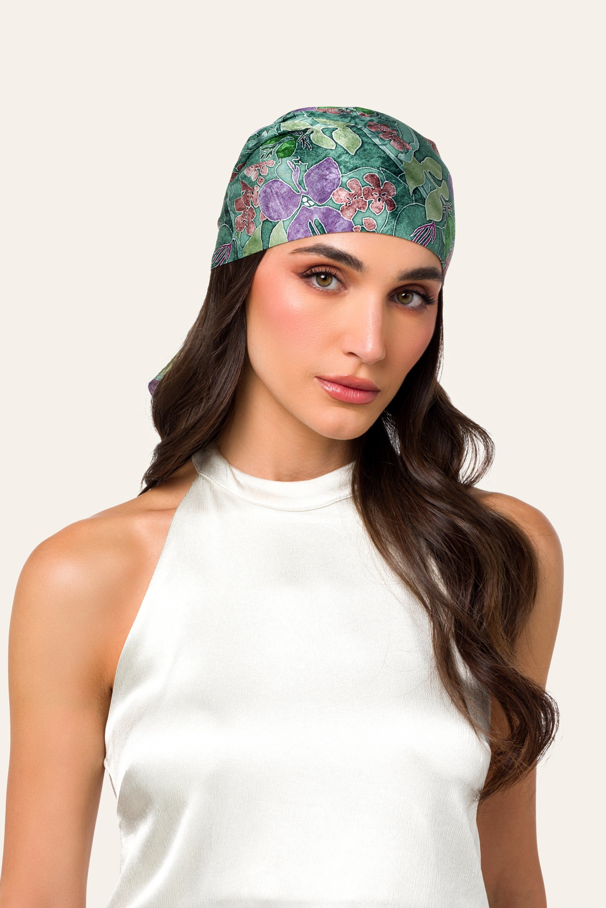 Curate your wardrobe with a one-of-a-kind piece like SIENNA. Blending a verdant garden print story and excellent craftsmanship, this slip-proof bandana adds vibrance and life to any look.