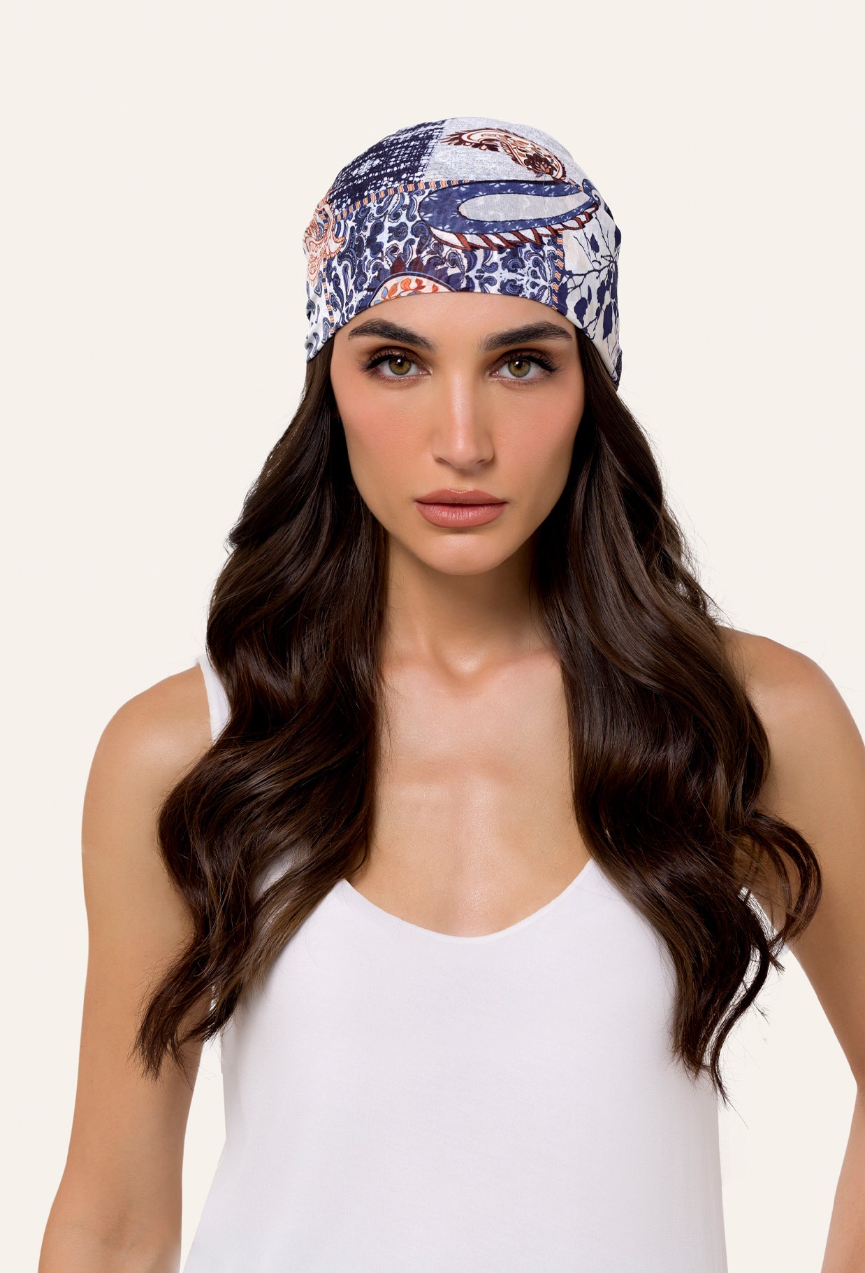 Timeless and spirited, STELLA has a mixed paisley print reminiscent of vintage scarves. Compared to traditional options, it's been made much easier to wear with Epitome's signature bandana shape and anti-slip fit.