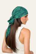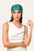 TARA is a nod to the timeless and glamorous aesthetic of Epitome. This Italian bandana is crafted with a special anti-slip design and enriched with a lyrical, paisley motif in green tones, so it goes from day to night with impeccable flair. Dress it up or down as desired.