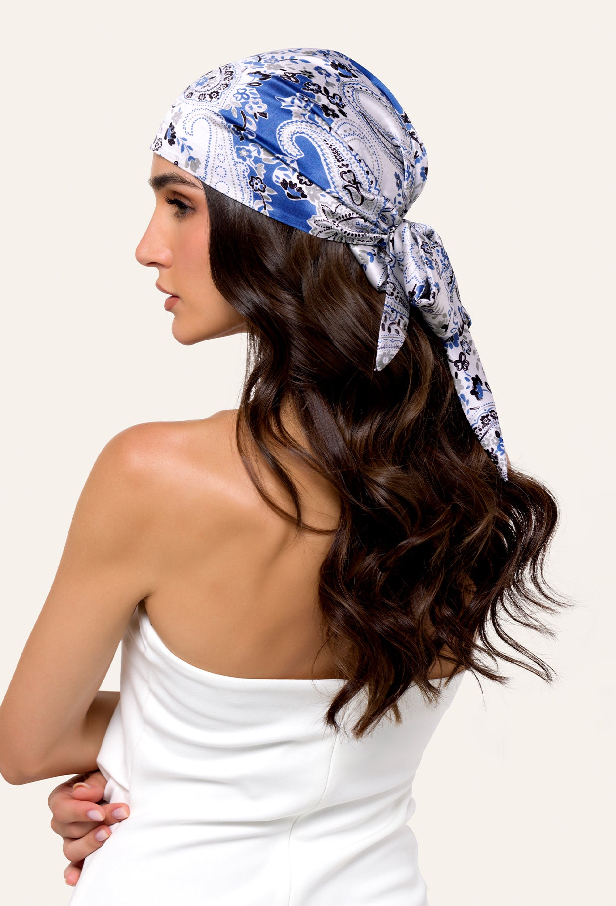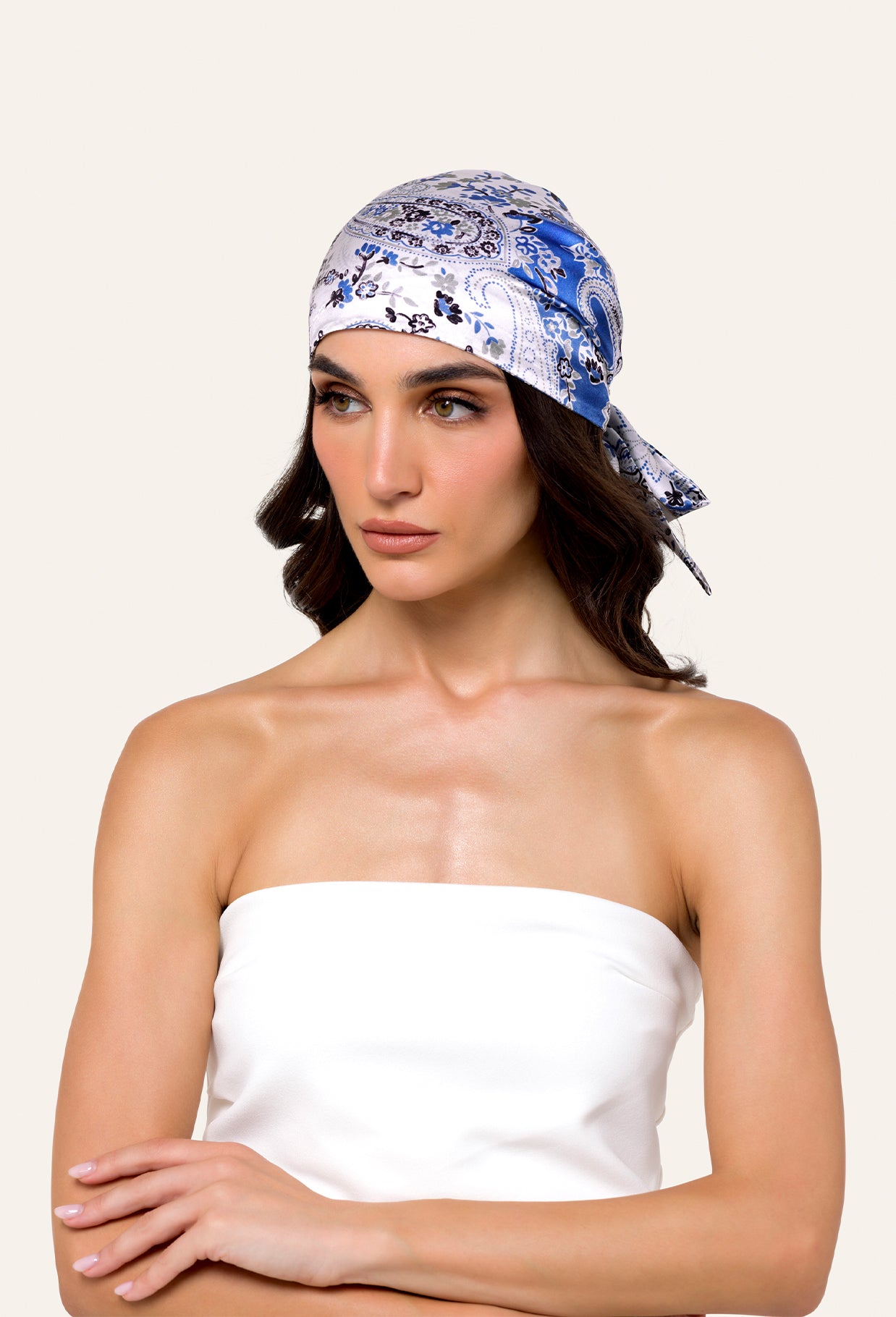 Made by hand from fine silk, THEIA showcases a swirly paisley print in blue and white tones. It offers a flattering shape and lightweight anti-slip fit to ensure ease of wear.